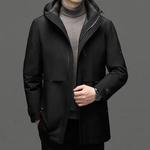 鹅绒羽绒服男中长商务连帽保暖直充男士外套