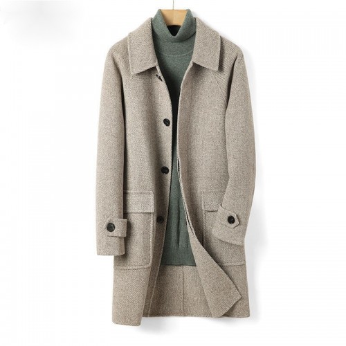 秋冬时尚手工双面呢大衣男中长款宽松无羊绒呢子外套羊毛休闲风衣