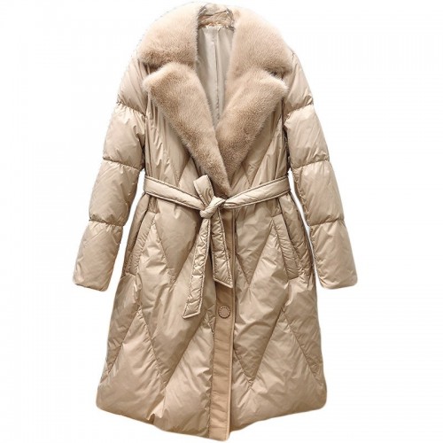 白鹅绒皮草羽绒服女中长款水貂毛整貂皮大衣修身显瘦外套