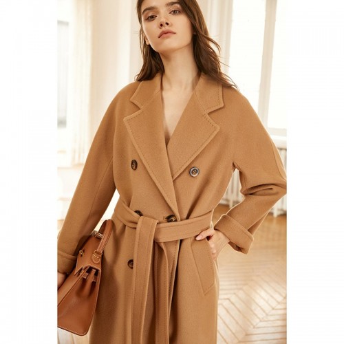 年高端驼色双排扣加厚羊绒大衣女中长款羊毛呢外套