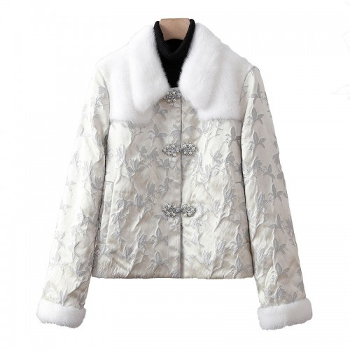 皮草大衣冬季新款水貂毛领国风鹅绒羽绒服女年轻款新中式刺绣外套