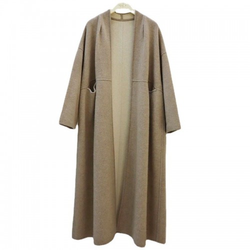 纯羊绒水波纹中长款赫本风双面羊绒呢大衣M家labbro毛呢外套