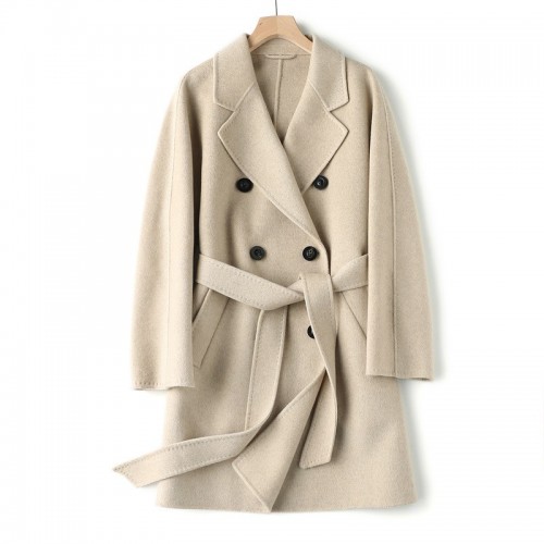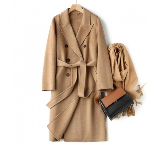 Citywalk 简约大气超细骆驼绒双面呢大衣 戗驳领双排扣系带外套女